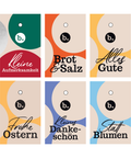 Auf Wunsch erhältst Du einen passenden Geschenkanhänger für die Backmischung im Glas. Wähle diesen bei Bedarf in den Optionen aus.